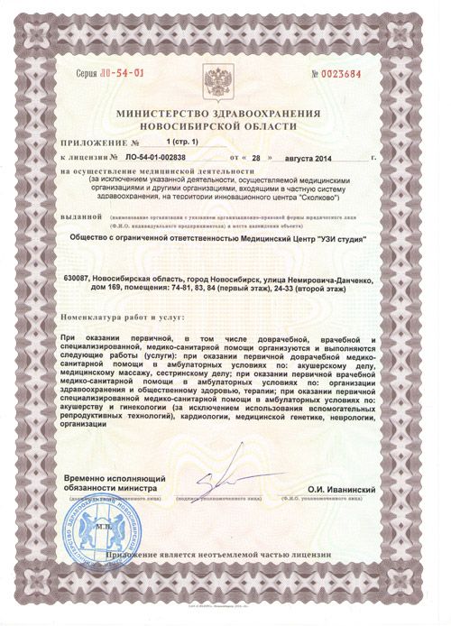 Сеть медицинских центров "УЗИ студия" – одна из ведущих частных медицинских сетей Новосибирска, специализирующаяся на дородовой УЗ-диагностике, акушерско-гинекологическом приеме, ультразвуковой диагностике общего профиля. Пациенты доверяют нам свое здоровье и здоровье своих будущих детей уже 15 лет.